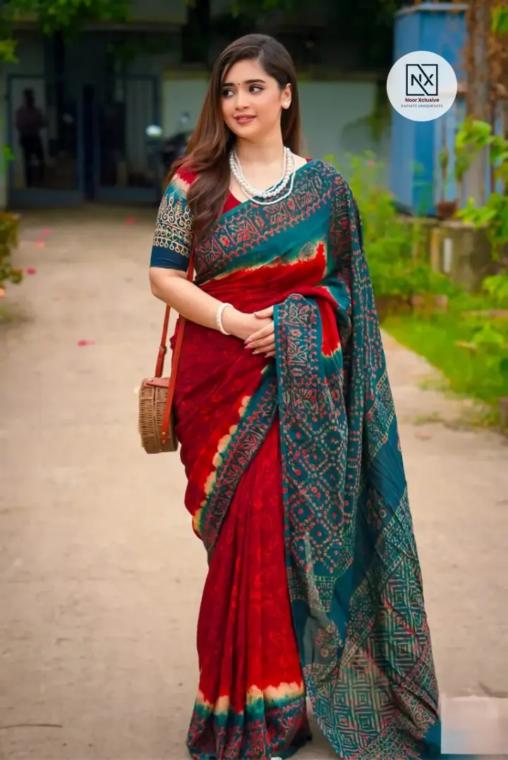 প্রিমিয়াম বাটিক সিল্ক মসলিন শাড়ী + ব্লাউজ পিস